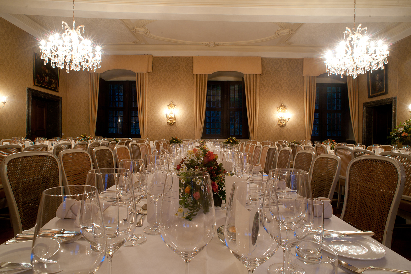 Das Brautpaar mietet das Schloss grundsätzlich exklusiv für die jeweilige Festgesellschaft und entscheidet selbst, welche Räume, Salons oder Außenflächen es nutzen möchte. So findet sich für jede Personenzahl das richtige Ambiente. Durch die Verwendung mehrerer Säle kann die Veranstaltung auch für größere Hochzeitsgesellschalften ansprechend gestaltet werden. Der malerische Innenhof bietet sich hervorragend für einen Empfang Ihrer Gäste unter freiem Himmel an.