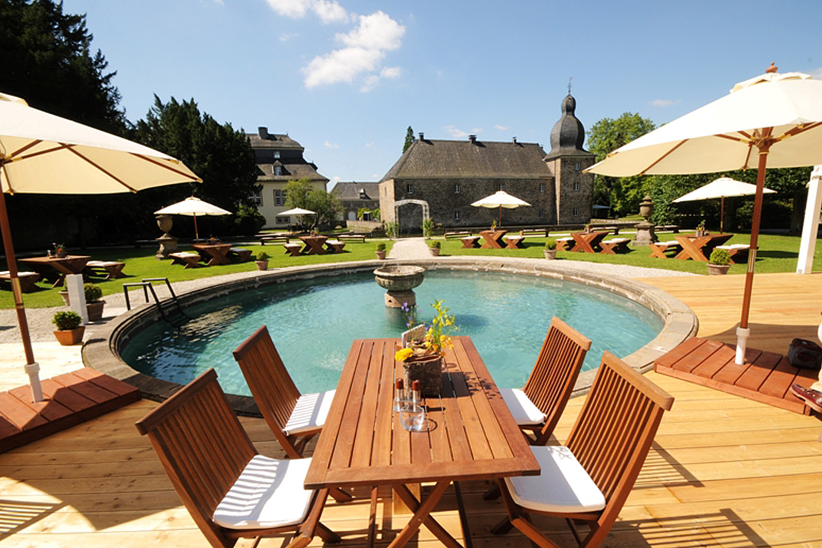 Regen Zuspruch findet der Park als romantische Kulisse für freie Trauungen, aber auch ganz aktuell – in Zusammenarbeit mit der Gemeinde Engelskirchen – für standesamtliche Trauungen auf der Terrasse des Pools mit anschließendem Sektempfang. Die unvergesslichen Momente können Sie – mit dem Schloss im Hintergrund – auf Ihren Hochzeitsbildern festhalten. Auch der malerische Innenhof des Schloss Ehreshoven bietet sich zusätzlich hervorragend für einen Empfang Ihrer Gäste unter freiem Himmel an.